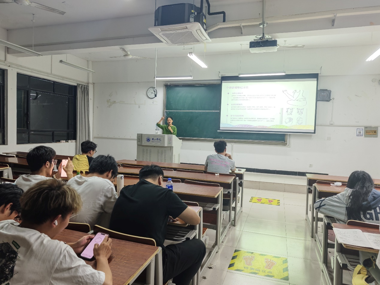 随后的“身体情绪信号解码”环节,通过案例分享、小组讨论,同学们深入剖析了常见情绪背后的身体信号。在热烈的讨论氛围中,大家各抒己见,互相交流在学习、生活中遇到情绪波动时身体的反应,共同探讨如何通过关注身体信号,及时察觉并调节情绪。活动最后,“植物拓染”体验将现场气氛推向高潮。同学们挑选喜爱的植物叶片,经过敲打、按压,让植物汁液在布料上留下独特的图案。在这个过程中,大家专注于手中的操作,内心逐渐平静,情绪也随之得到舒缓。许多同学表示,拓染的过程就像情绪流经身体,从最初的杂乱到最终呈现出美丽的图案,让人感受到情绪转化的奇妙。