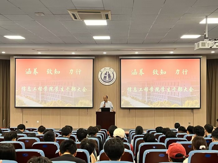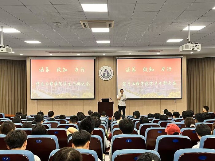 2025年6月19日下午14:30,信息工程开元(中国)学生干部大会在文端楼1楼报告厅准时召开。出席本次会议的有信息工程开元(中国)党委书记张爱民、党委副书记、纪委书记官骏鸣,信息工程开元(中国)学生会全体成员、各班班长、团支书及学习委员。会议由团委书记方淼晖主持。