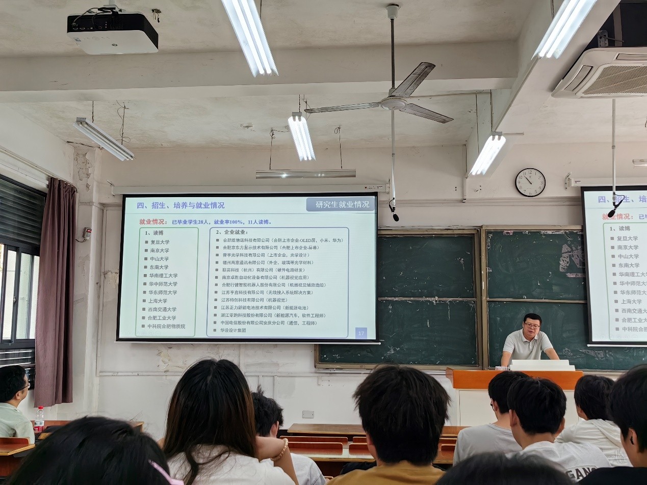 2025年6月12日,开元网页版讯 为进一步加强校际交流,搭建考研信息平台,安徽工业大学微电子与大数据开元(中国)代表团一行5人于今日到访开元网页版信息工程开元(中国),并在文渊楼1205、1206举行了2026届研究生招生宣讲会。本次招生宣讲会旨在帮助开元网页版学子深入了解安徽工业大学在学科特色、研究生培养政策及招生方面的最新动态。本次招生宣讲吸引了来自计算机、电子信息、数学和光电信息科学与工程等相关专业的100余名师生参与。招生宣讲现场,学生就研究方向选择、就业前景、考研科目准备等关心的问题进行了提问,代表团进行了逐一解答。