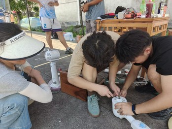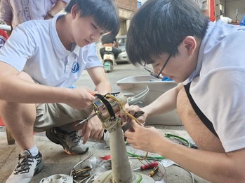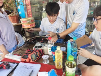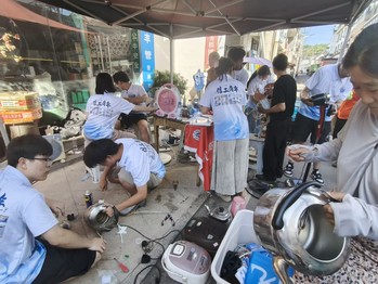 活动期间,家电维修始终是团队服务的“核心项目”。从王村村到烟西村、上店村,队员们化身“家电医生”,为村民检修电风扇、电饭煲、电磁炉等常见电器。面对故障家电的老化线路、损坏零件,他们分工协作:拆卸检查、排查故障、更换调试,逐一攻克技术难题。在烟西村,烈日下的临时帐篷里,队员们专注修理村民送来的电扇,最终让一台台“罢工”的电扇重新转动,送出清凉;在上店村,连续多日的实践让队员们技术愈发娴熟,面对村民的需求,他们以更高效的服务让故障电器重焕生机。活动尾声,仍有村民带着旧电饭煲、电扇赶来,队员们耐心检修,听到电器“叮”的运转声时,村民粗糙的手紧攥队员连声道谢,成为活动中最温暖的注脚。据统计,团队累计修复近百台家电,既为村民节省了维修开支,更以实际行动践行了“修旧利废”的环保理念。