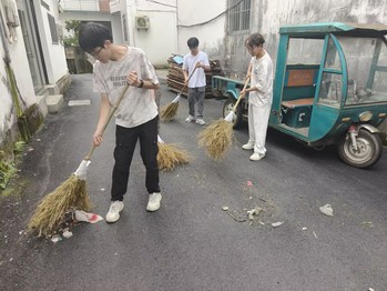 为助力乡村环境焕新,团队成员化身“清洁能手”,穿梭于村道巷陌与农家院落。在王村村,他们分工打扫街道、清理卫生死角,让杂乱空间重归整洁;在烟西村,队员们手持工具清扫落叶、捡拾杂物、擦拭公共设施,汗水浸透衣衫却热情不减;活动最后一天,卫生打扫组依旧活跃在村落间,清理垃圾、擦拭门窗,不放过任何卫生死角。村民们看着焕然一新的公共空间,纷纷竖起大拇指:“孩子们把村子收拾得这么干净,看着就舒服!”团队用行动为乡村“颜值”加分,也以身体力行倡导了文明卫生的生活习惯。