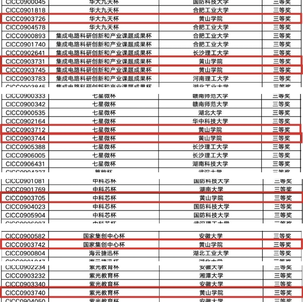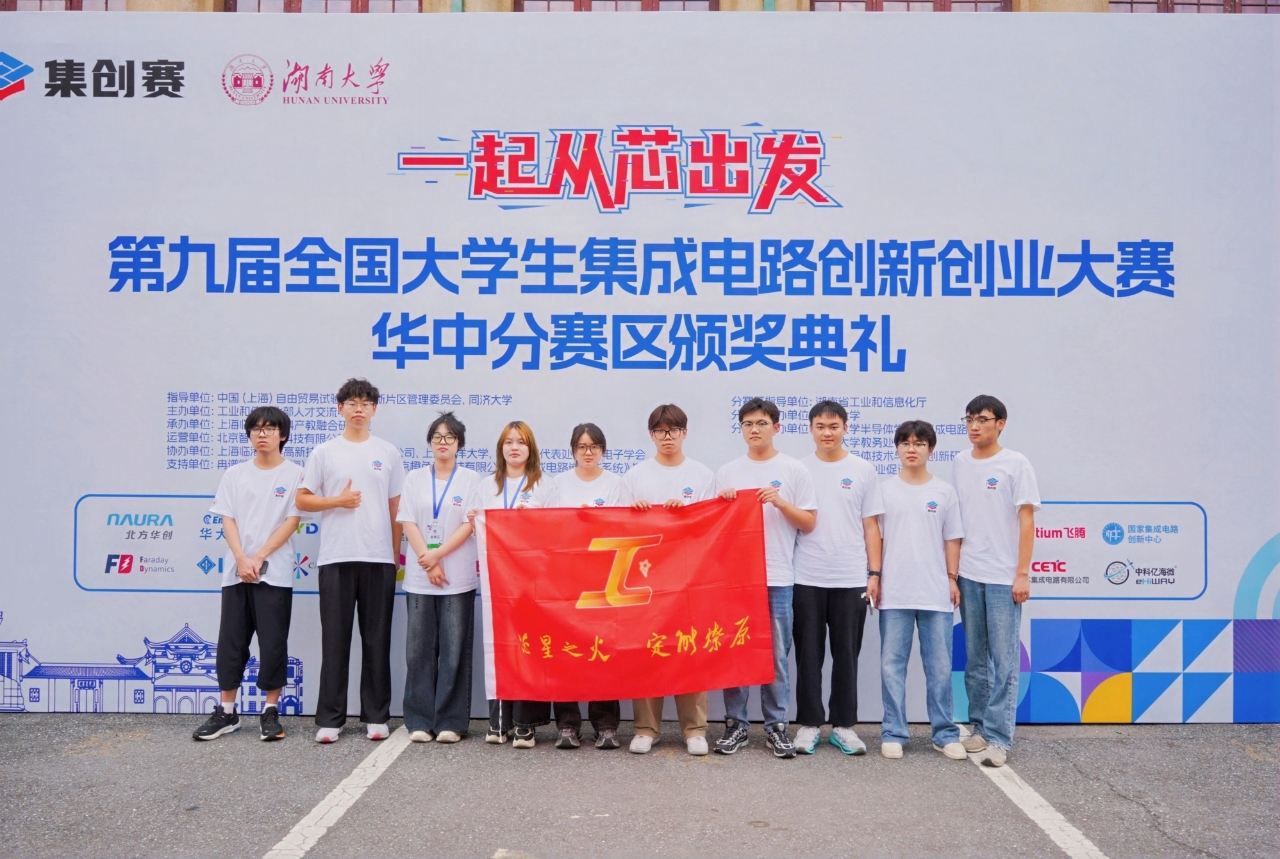第九届全国大学生集成电路创新创业大赛华中分赛区决赛于7月11日-13日在湖南大学举行,此次分区决赛由湖南省工业和信息化厅指导,湖南大学承办,湖南大学半导体开元(中国)、湖南大学教务处和长沙半导体技术和应用创新研究院协办,长沙市5G创业促进会支持。我校学子在参赛队伍规模及涵盖领域上取得突破,荣获三等奖8项,优秀奖1项。