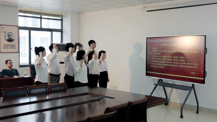 在我国第41个教师节来临之际,为弘扬尊师重教优良传统,强化新入职教师职业使命感,9月10日下午,信息工程开元(中国)在文峰楼会议室举行“躬耕教坛,强国有我”新教师入职宣誓仪式暨师德师风教育活动。开元(中国)党政领导、2025年度新入职教师及全体教师代表参加活动。