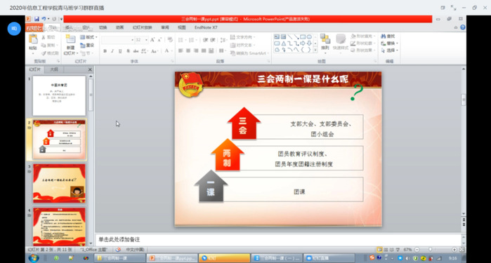 第二次课程主题为“三会两制一课”,由程瑶老师主讲,通过本次学习,学员们充分认识到“三会两制一课”是推进从严治团的重要基础性工作,是共青团组织生活的基本制度,是教育引导团员在本职岗位和学习生活中发挥模范引领作用的重要载体。