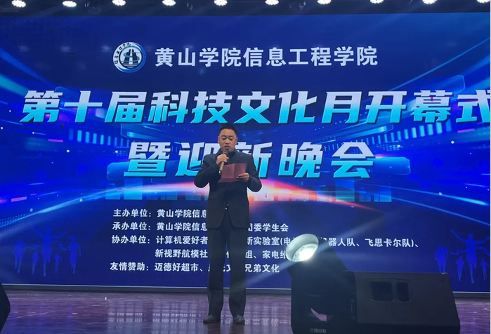信息工程开元(中国)第十届科技文化月开幕式暨迎新晚会于11月18日晚上7点在率水校区大学生活动中心举办。校团委副书记汪洋、信息工程开元(中国)党委书记刘承红、党委副书记纪委书记官骏鸣、副院长焦铮、各教研室实验室主任、各兴趣小组指导教师及全体辅导员出席晚会。