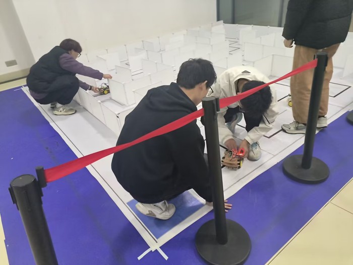 经现场测试,大部分循迹小车表现出了良好的性能:能够根据地面铺设轨道进行路径识别和调整行驶方向。最终根据走完全部路线用时,对参与考核队员近期的培训情况进行了比赛打分,考核整体结果令人满意。本次考核旨在考查新队员在入队一个多月的时间中对51单片机知识、物联网和嵌入式系统知识的学习掌握情况。今后,队内还将继续推进队内考核比赛工作,以期在队内形成良好的学习竞技氛围。