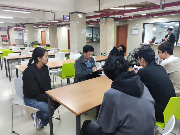 焦铮与四家公司相关负责人就学生就业岗位、专业需求等进行交流,沟通企业对学校招聘等事宜。