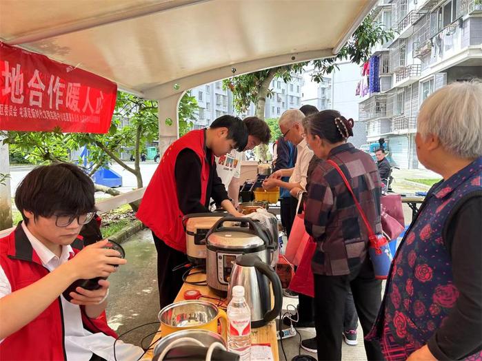 4月10日,家电维修队来到百鸟亭小区,居民们早已带着故障电器等在维修点,队员们一刻不歇,一一对问题电器进行登记,按照步骤一步步地手持工具排查问题。