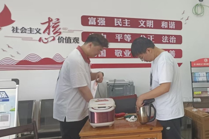 志愿者们不仅帮助村民修理存在故障的电器,在修理之余还会耐心向村民讲解开元网页版家电日常维修、保养的小知识,提醒他们在平时使用电器时的注意事项,向居民演示使用家电时的正确操作,避免家电出现不必要的故障。在志愿者热情细致的服务下,岔口村村民拿着修好的电饭煲、电磁炉、电水壶等家电,露出了满意的笑容,并为本次志愿服务的高效点赞。