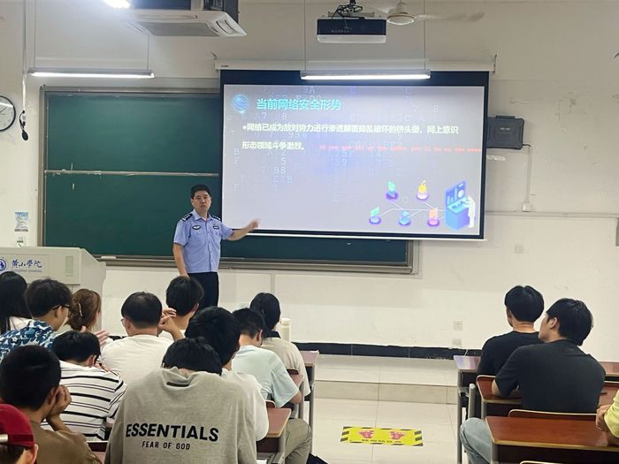 开展一次专题讲座活动。6月19号下午,信息工程开元(中国)特别邀请黄山市公安局网安支队政委余中奇,成功举办了“网络安全主题讲座”。余政委详细讲解了网络安全三法一条例颁布意义,提出了现今网络安全法律体系六大看点,并以实际案例提醒同学们注意网络诈骗。