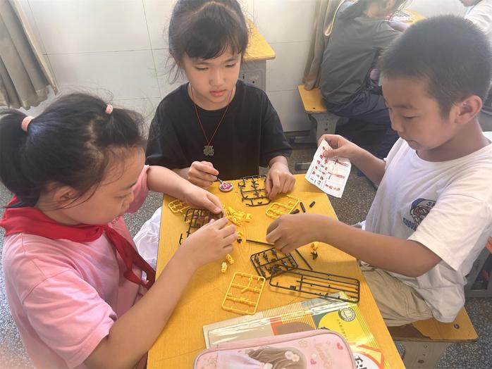 在课堂上,“小老师”们向学生介绍了常见的航模类型,飞机的结构和各部分名称以及作用,让孩子们了解了飞机的基本结构和升空原理。期间,“小老师”们还介绍了一些航空英雄的伟大事迹,在孩子们心中埋下了一颗颗航天梦的种子。本次科普课最后环节,由小朋友们分组合作,拼搭航模小模型。他们虽然稚嫩,但拼搭过程却非常认真,不时有小朋友举手提问,在科普“小老师”们的指导和协助下,模型先后搭建成功,孩子们开心地笑了。这次活动拓宽了学生的眼界,普及了航空科普知识,激发了学生爱科学、学科学、探索科学未知领域的兴趣和欲望。