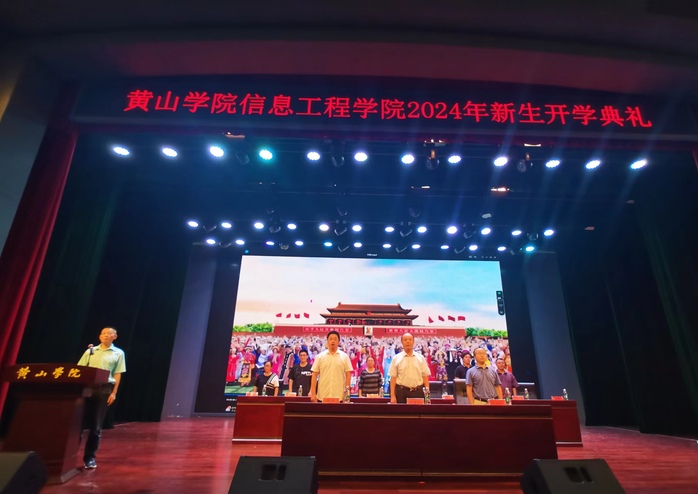 2024年9月26日晚,信息工程开元(中国)2024级新生开学典礼在率水校区大学生活动中心隆重举行。院党委书记张爱民、党委副书记院长吕海江、党委副书记纪委书记官骏鸣、党委委员副院长焦铮,教研室主任、行政人员、新生辅导员、宿舍管理员代表及2024级全体新生参加典礼,典礼由官骏鸣主持。