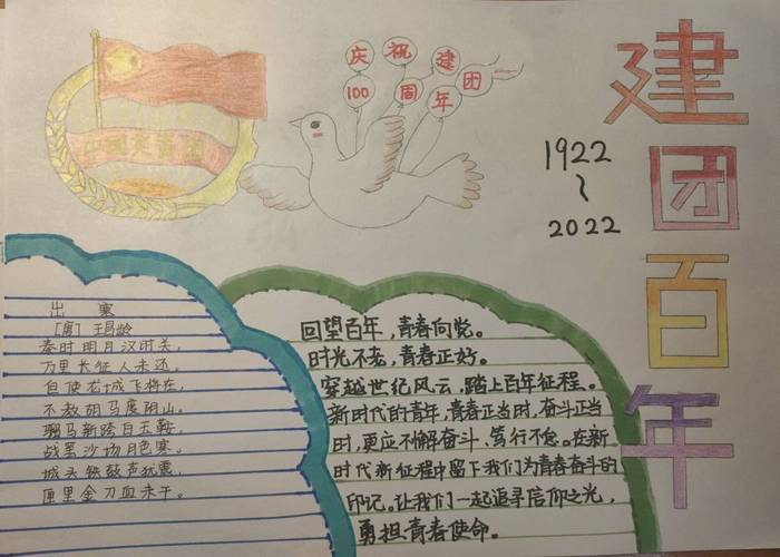 同学们借助画笔将自己的心中感想表达在画纸上,在大家提交地作品里,有的描绘了百年团史历程,有的描画了部分中国共产主义青年团大事件,有的是阐述了优秀共青团员的先进事迹,还有的直接写出了自己对党和国家的热爱以及对美好未来的憧憬……每一份作品中都饱含着同学们对共青团的真挚情感。
