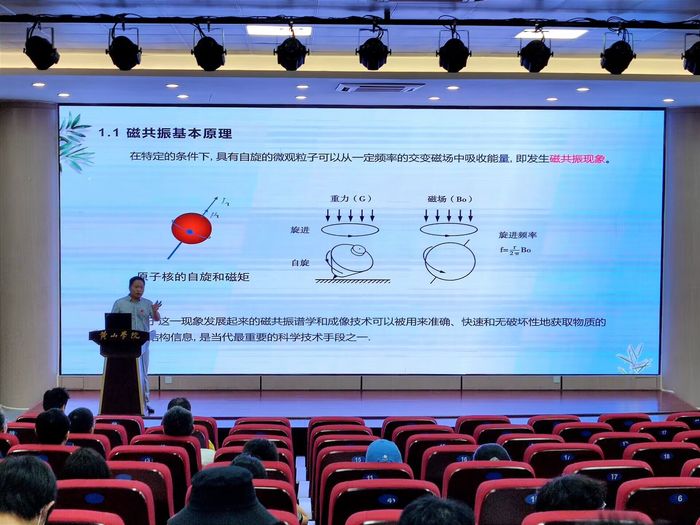报告以自旋磁共振技术为切入点,重点介绍了基于金刚石中氮-空位(NV)色心的新型光学探测磁共振技术及其作为固态量子比特在量子精密测量上的应用前景。报告中从NV色心结构、能级及其优越性能,光学探测磁共振技术,光学探测磁共振实验平台建设等几个方面展开,结合自己的科研工作,系统阐述金刚石中NV色心纳米量子传感器件的工作原理、实验实现和优化以及在相关领域的应用。报告的最后叶剑锋分享了近几年来我校光学探测磁共振实验平台的科研成果。报告集科学性与知识性于一体,图文并茂,深入浅出,丰富了在场师生对基于金刚石中氮-空位(NV)色心的新型光学探测磁共振技术的认识。