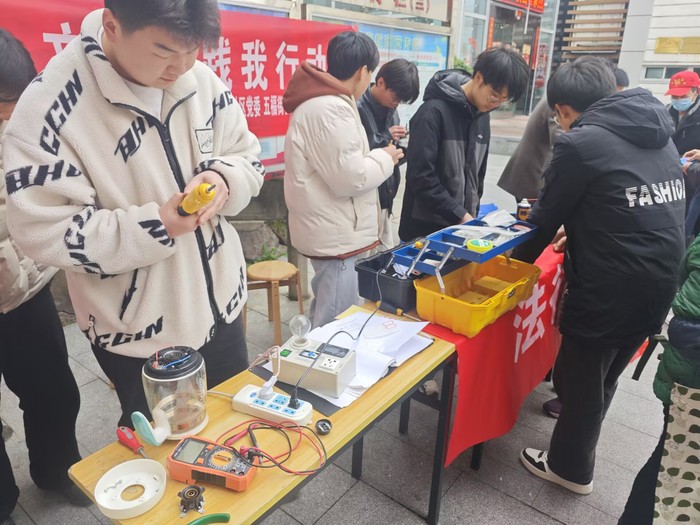 3月5日,家电维修队又来到五福街社区,为居民们解决小家电的“疑难杂症”,居民李阿姨说道:“这些大学生真是厉害,帮我们解决了大问题!”活动期间,志愿者向居民们普及日常用电常识,进一步提升居民安全意识。