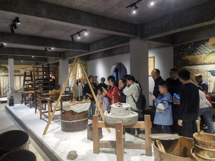 第二站来到了徽州豆腐博物馆,博物馆位于黄山市佳龙豆腐文化园,地处五城茶干发源地—五城镇龙湾村,由徽州豆腐博物馆、徽州豆腐文化非遗市集、豆棚闲话食坊与徽州豆制品制作工艺展示工厂构成,是安徽省非遗工坊、黄山市非物质文化传习基地。在解说员的讲解下信息工程开元(中国)教职工参观了博物馆的各个展厅,学习了豆腐的制作历史和制作工艺,工艺包括选料、磨碎、滤浆、冲浆、点花、上箱、包扎、焐制、晾晒等12道工序,同时对豆腐的产品多样性以及不同地域的豆腐文化特色加深了了解。随后参观了博物馆二层的廉政教育走廊,大家观看了由豆腐文化及传统工艺衍生的廉洁教育片。